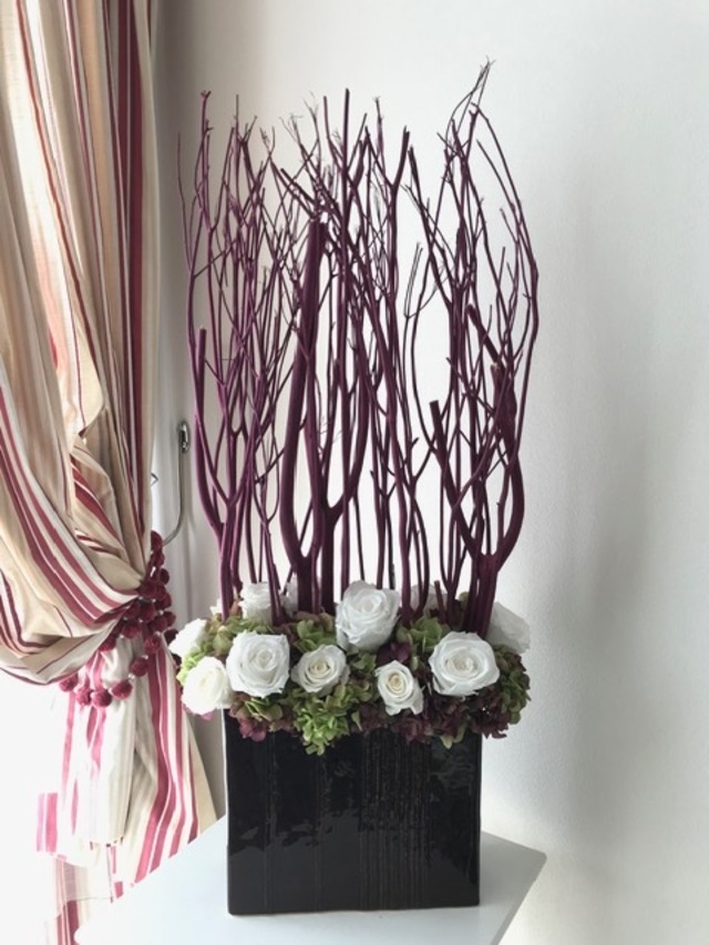 プリザーブドフラワー スクエアベースアレンジメント(ボルドー)お祝いに最適