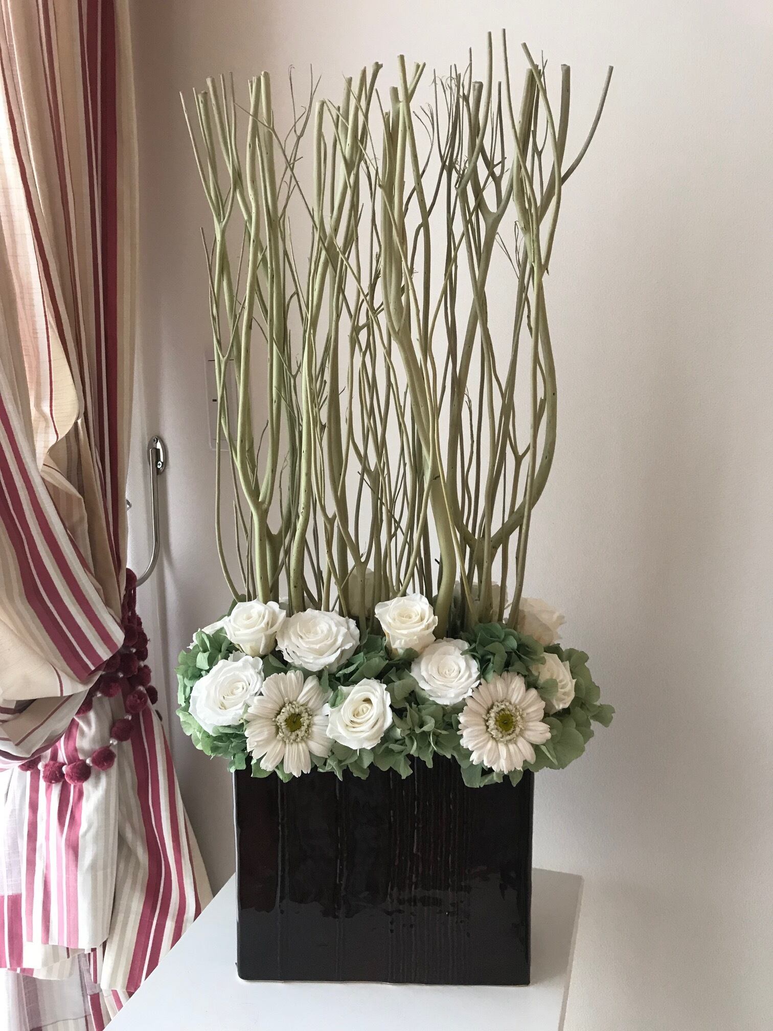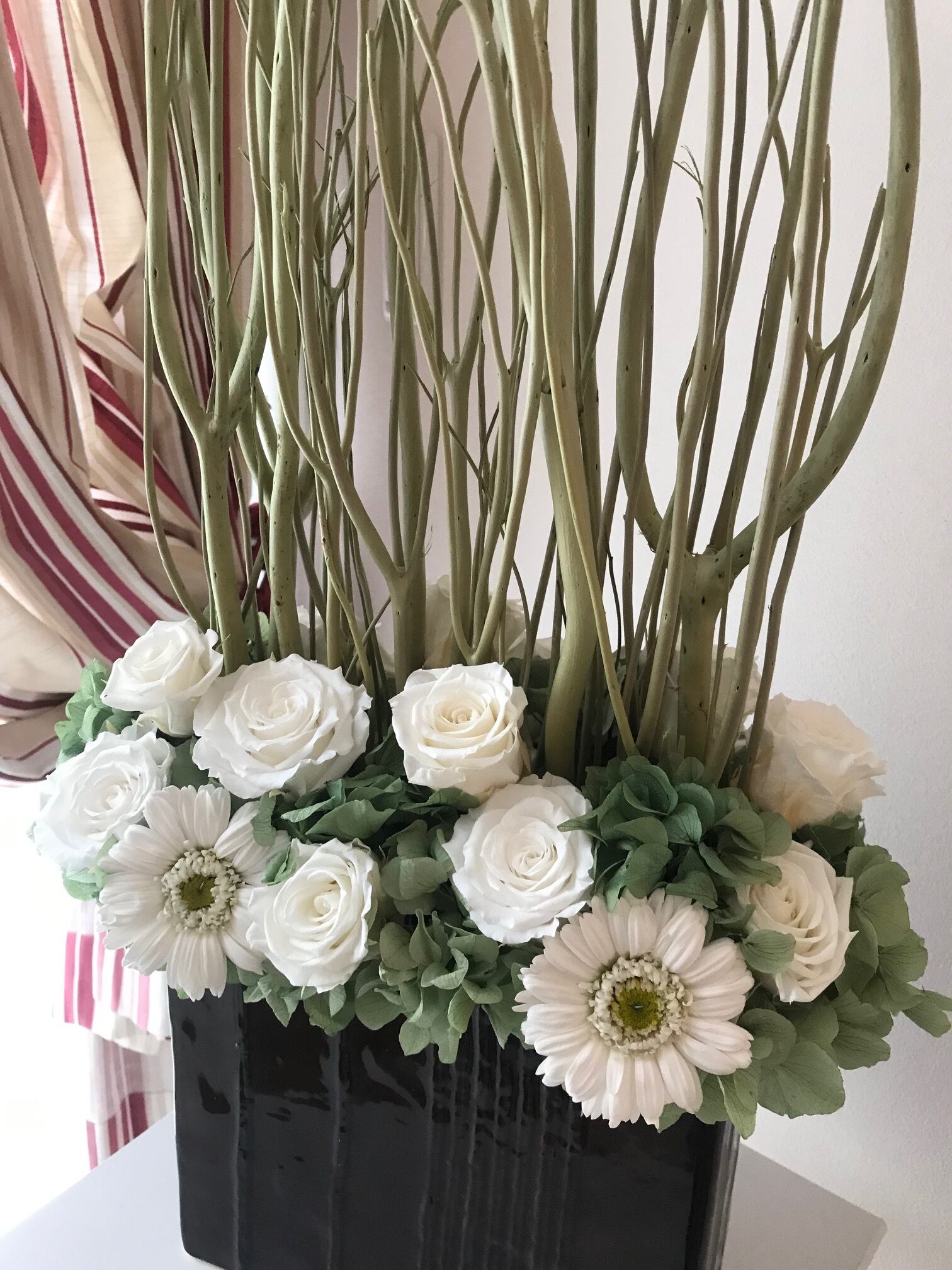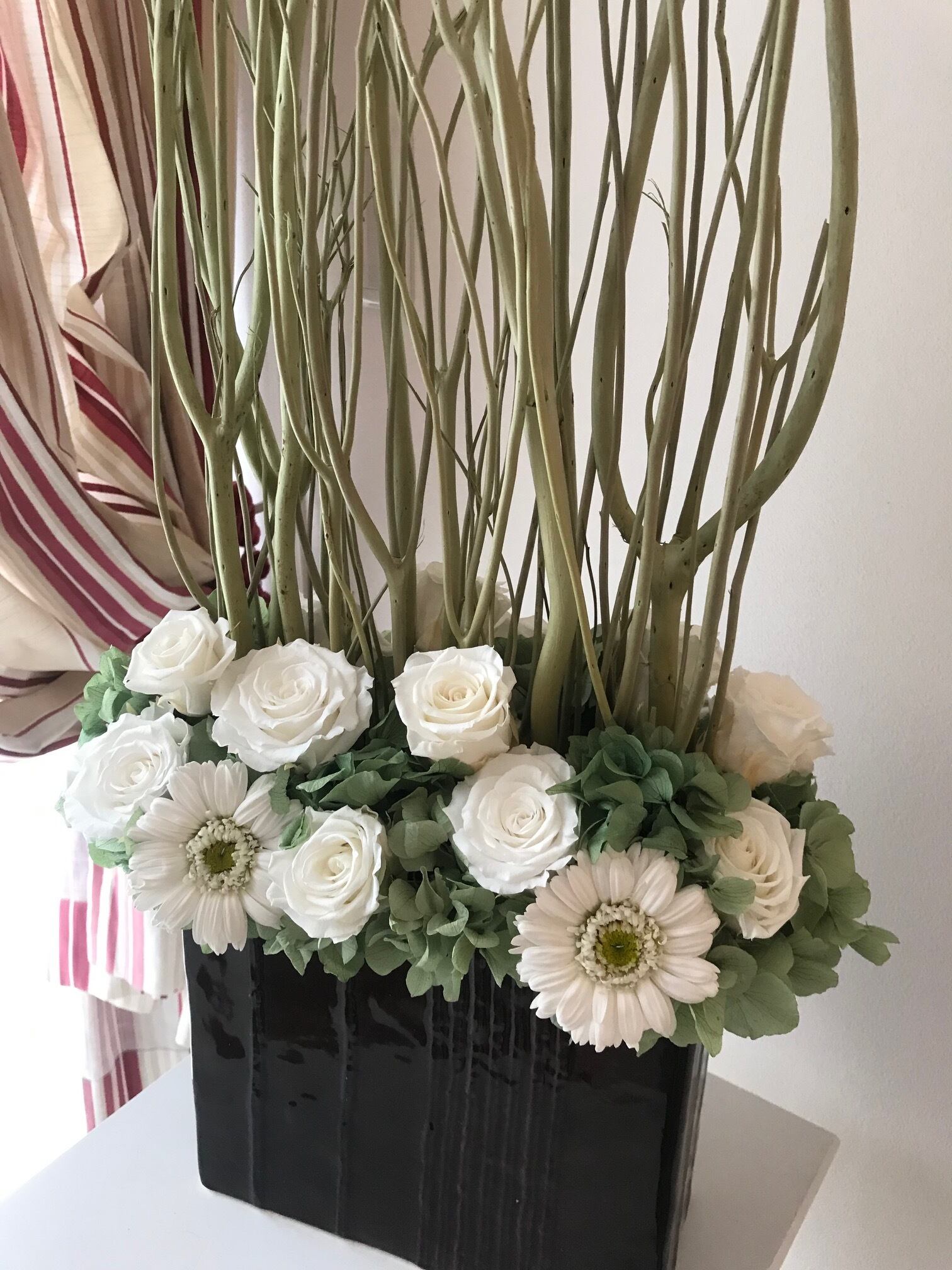 プリザーブドフラワー スクエアベースアレンジメント(白)お祝いに最適