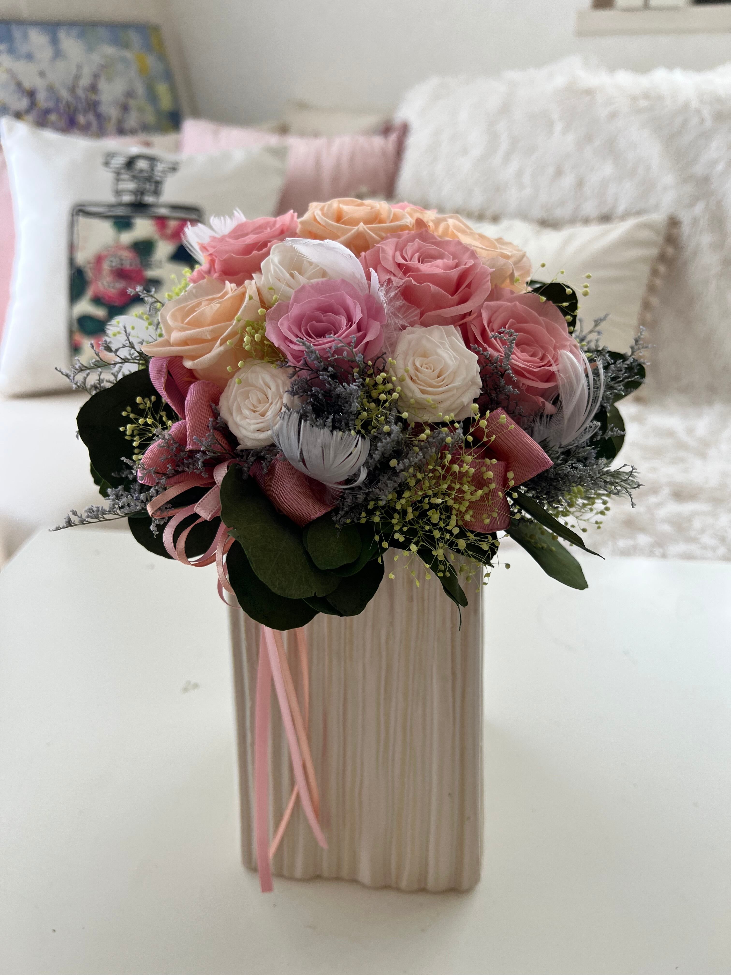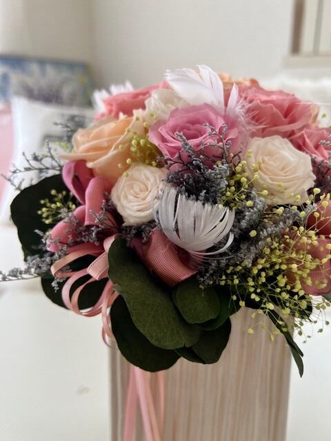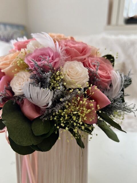 長持ちするプリザーブドフラワーを使用しているため、あなたの大切な瞬間をいつまでも彩ります。