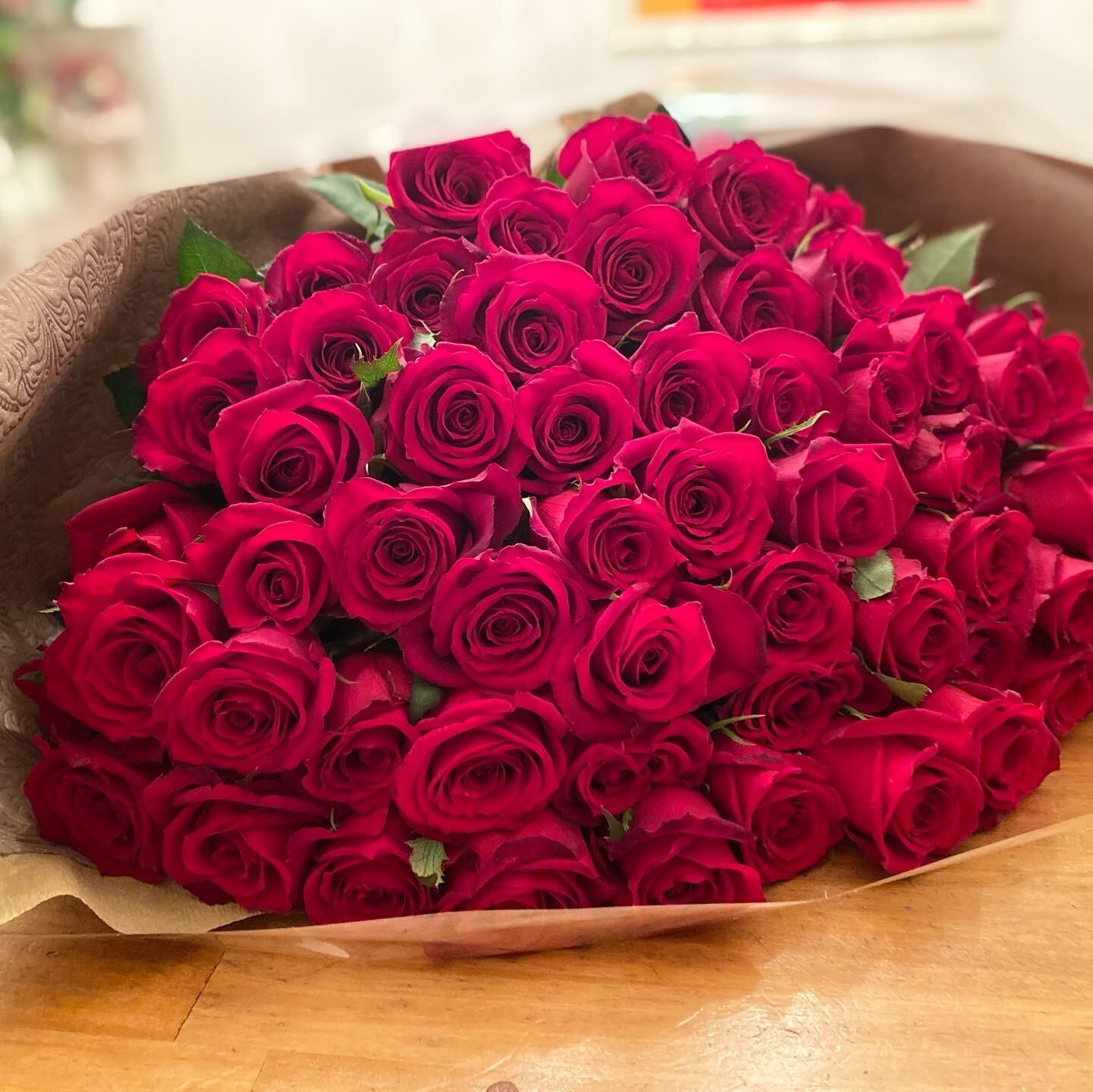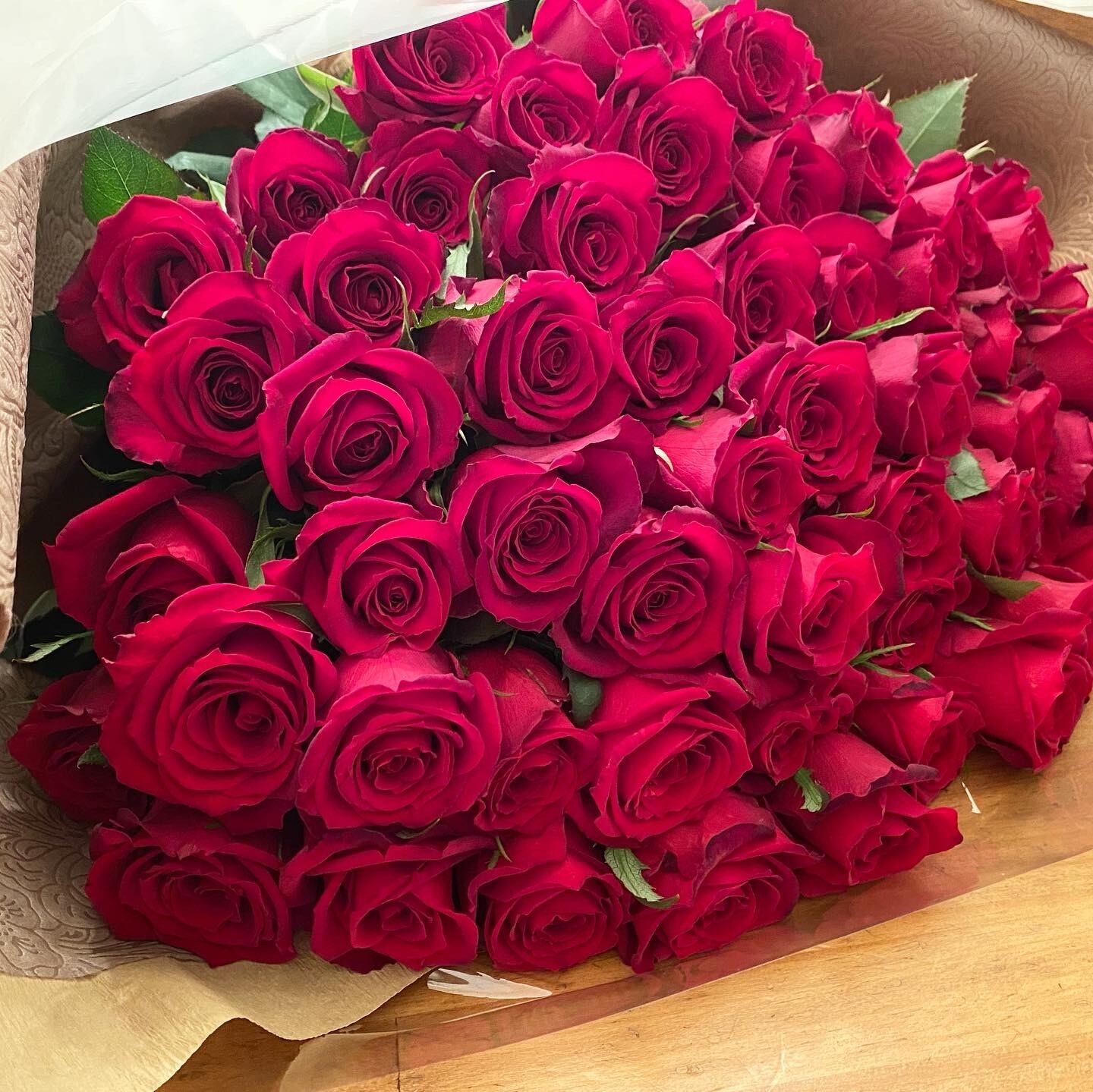 仕入れたばかりの新鮮なバラを束ねてお届けいたします。